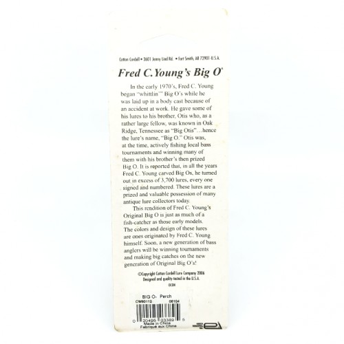 Cotton Cordell Fred Young Original Big O Wooden Lure, Perch Color on Card