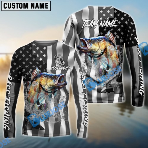 Bluejose American Flag Fish Reaper Custom Long Sleeve Shirts , Personalized Patriotic Fishing Gifts