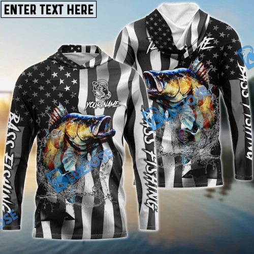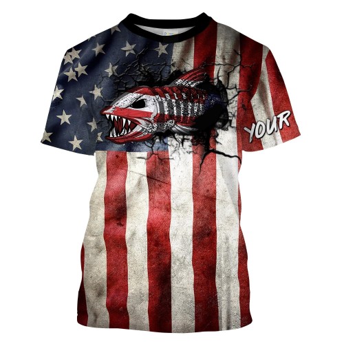 Bluejose Bass Fishing American Flag Red Blue Seawave Custom Name & Team Name Shirts For Kids
