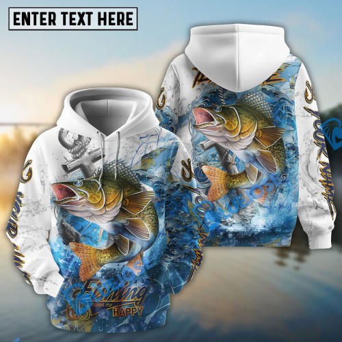 Bluejose Walleye Fishing American Flag Vintage Splash Art Custom Name & Team Name 3D Shirts