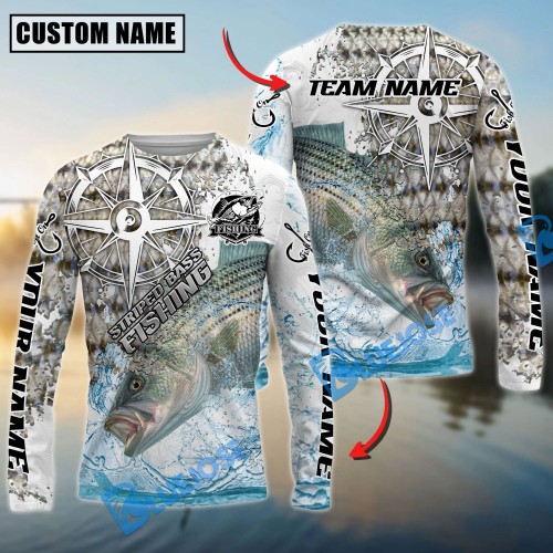 Bluejose Striped Bass Fishing Patriotic Water Splash Theme Custom Name & Team Name 3D Shirts