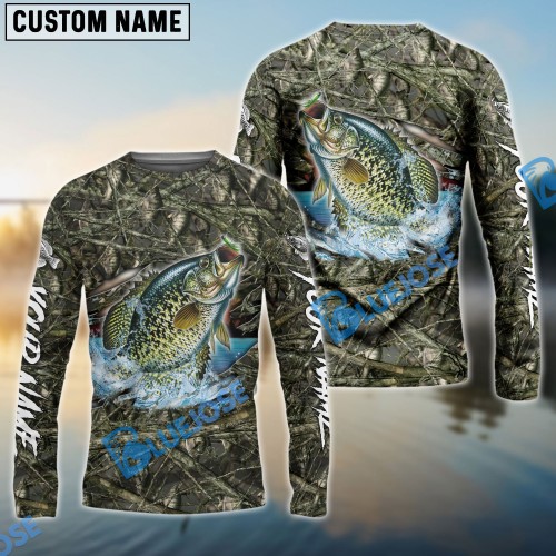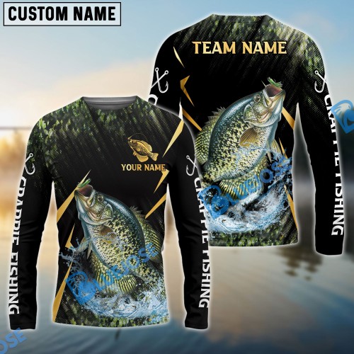 Bluejose Crappie Fishing Dynamic Water Splash Scale Pattern Custom Name & Team Name 3D Shirts