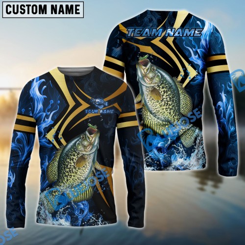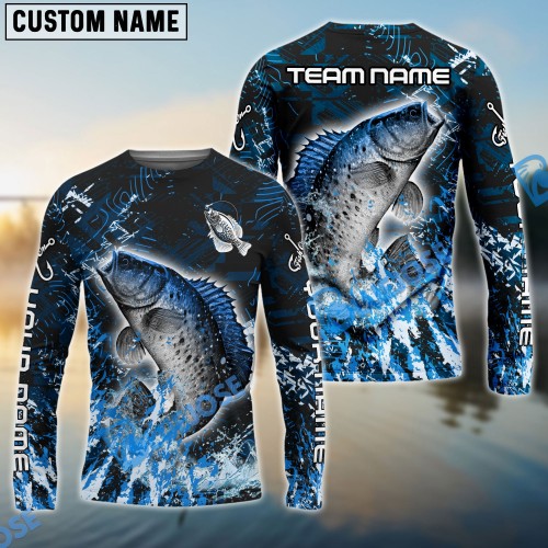 Bluejose Crappie Fishing Dynamic Water Splash Scale Pattern Custom Name & Team Name 3D Shirts