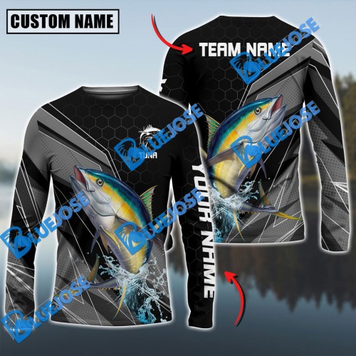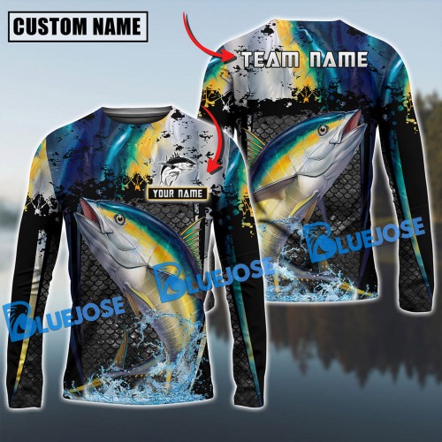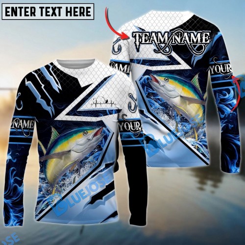 Bluejose Tuna Fishing Splash Blue Water Hook Scratch Sport Custom Name & Team Name 3D Shirts