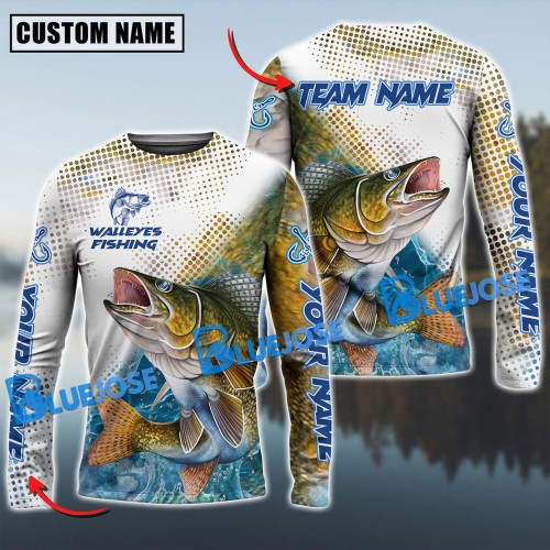 Bluejose Walleye Fishing Jumping Fish Rope Hook Ocean Theme Custom Name & Team Name 3D Shirts