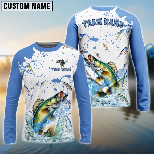 Bluejose Walleye Fishing White Fin Water Silhouette Sport Custom Name & Team Name 3D Shirts