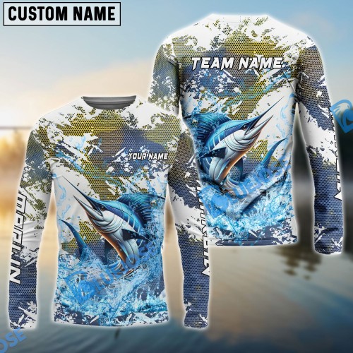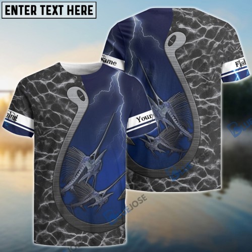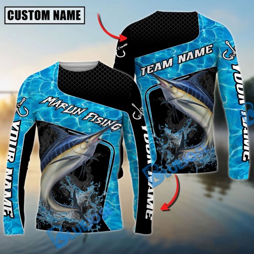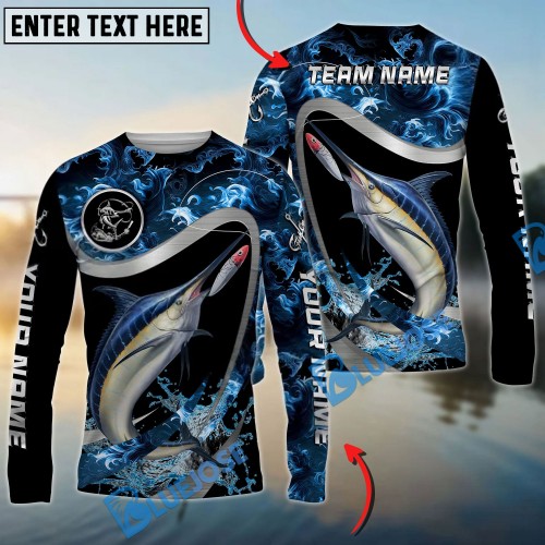 Bluejose Marlin Fishing Patriotic American Flag Skin Design Custom Name & Team Name 3D Shirts