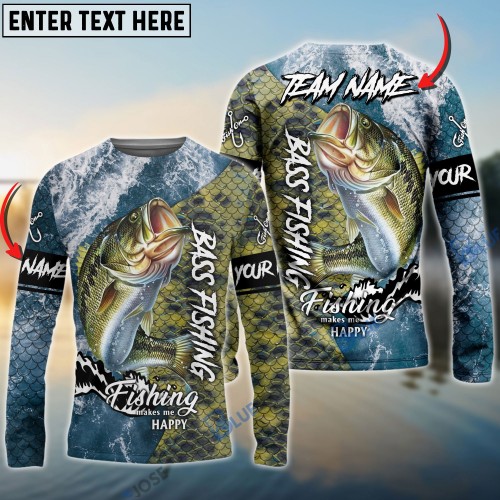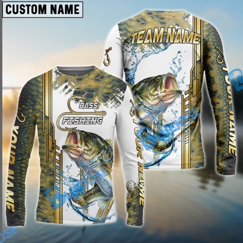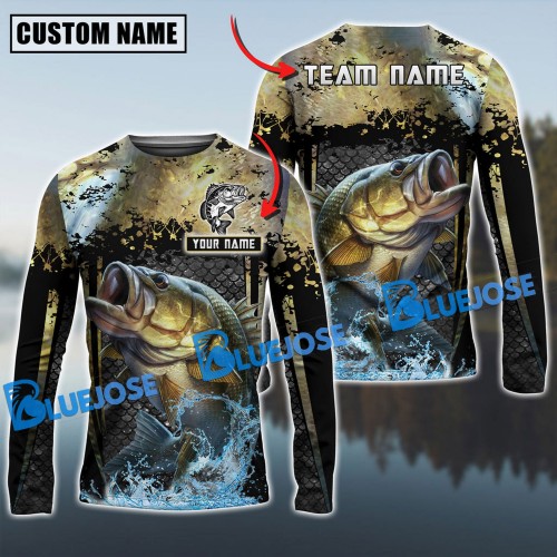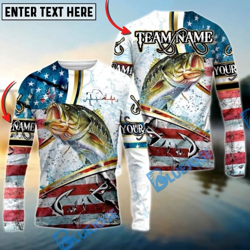 Bluejose Bass Fishing Realistic Fish Compass Anchor Pattern Custom Name & Team Name 3D Shirts