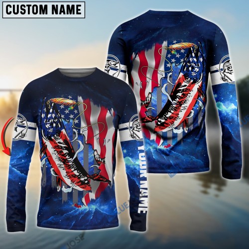 Bluejose Mens Flathead Catfish Fishing American Flag Long Sleeves Shirt – Personalized Fishing Gifts