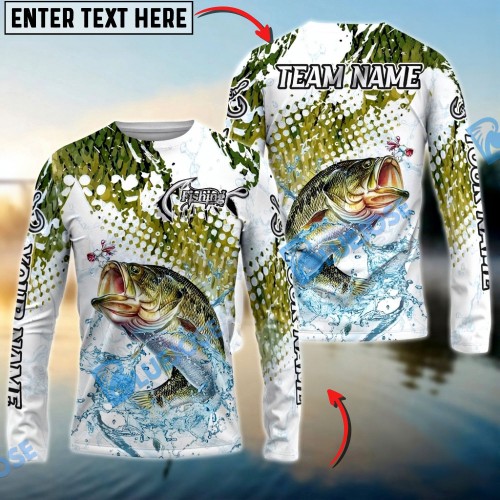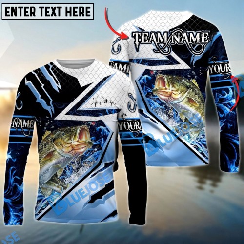 Bluejose Bass Fishing Splash Blue Water Hook Scratch Sport Custom Name & Team Name 3D Shirts