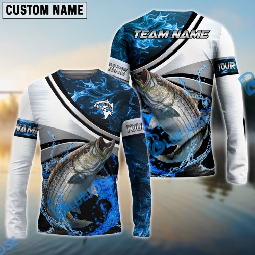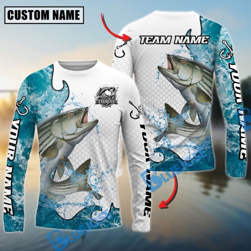 Bluejose Striped Bass Fishing Dynamic Water Splash Scale Pattern Custom Name & Team Name 3D Shirts