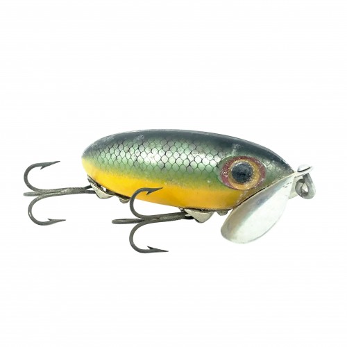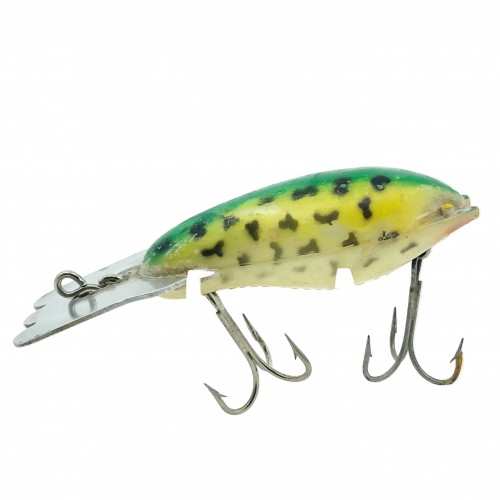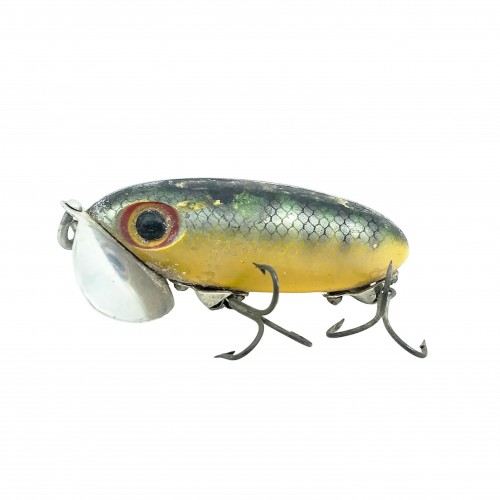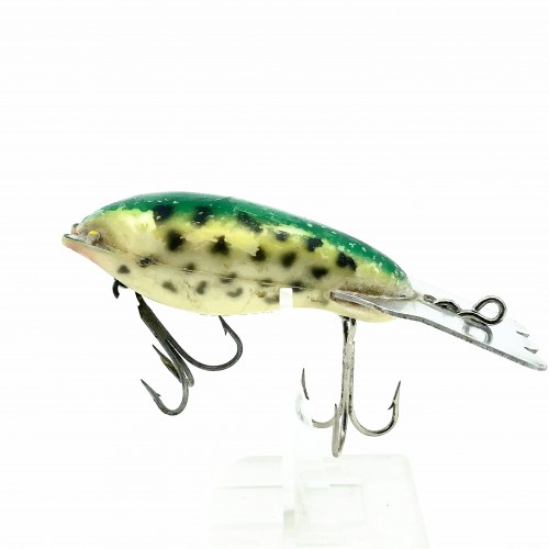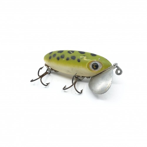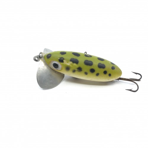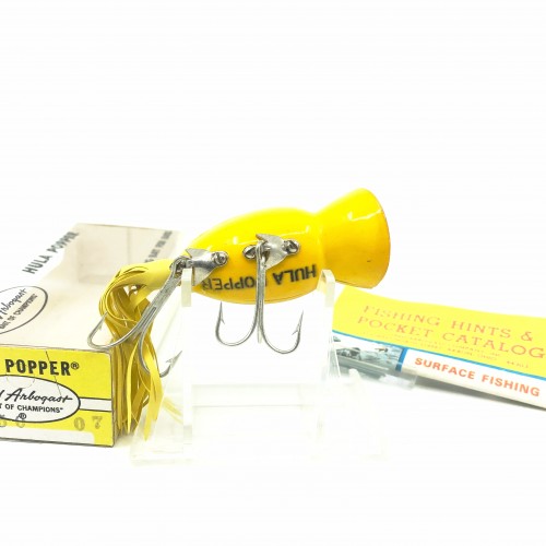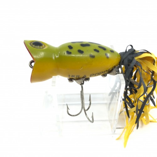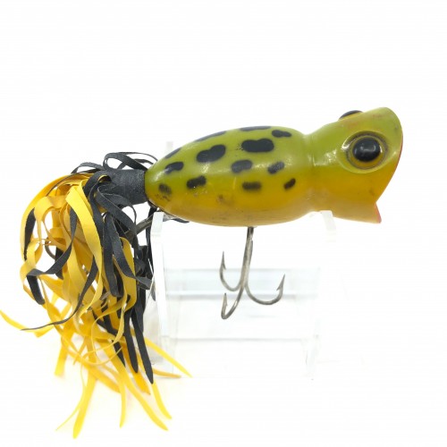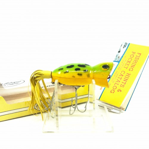 Arbogast Hula Popper 750, #07 Frog/Yellow Belly Color with Box – Side Stencil