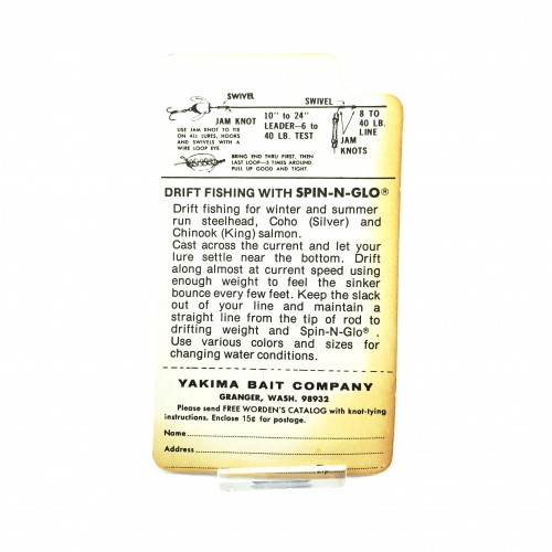 Vintage Worden Spin-N-Glow (Rigged) Drift Bobber Size No.10, Fluorescent Orange Color on Card