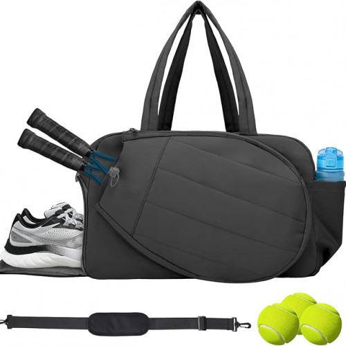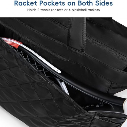 Tennis Tote Bag with Shoe Compartment – Extra-Large Quilted Pickleball Bag Holds 2-4 Rackets, Water-Resistant & Lightweight for Men & Women