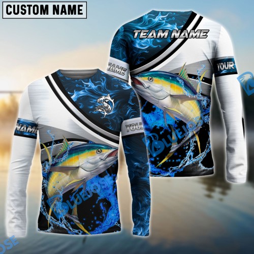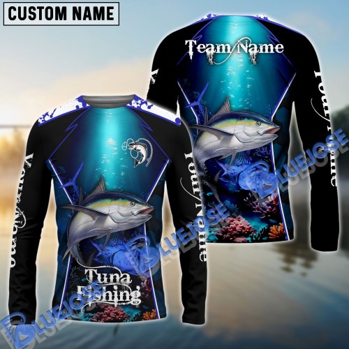 Bluejose Tuna Fishing Jersey Blue Camo Pattern Personalized Name And Team Name Long Sweat Shirt