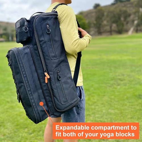 Fitdom Tactical Inspired Yoga Bag for Adult Men. Heavy Duty Yoga Bags and Carriers Fits All Your Stuff. Yoga Mat Bag with Expandable Compartment for 2 Yoga Blocks & Multiple Pockets – Yoga Mat Carrier