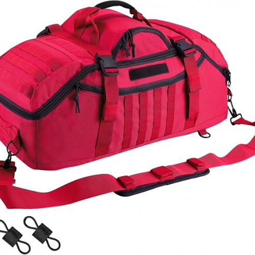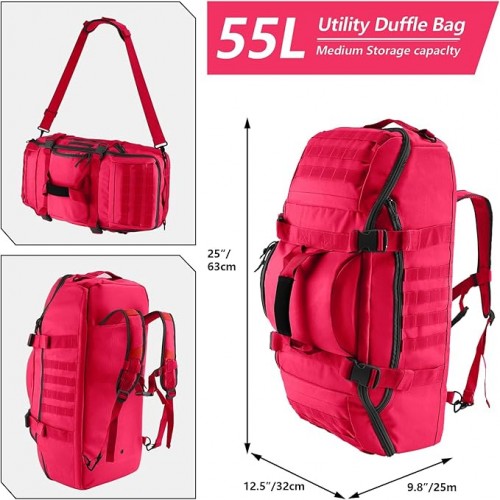 55L Large Duffle Bag, 3-in-1 Tactical Backpack MOLLE Pack for Sports, Gym, Outdoor, Red