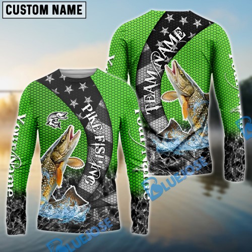 Bluejose Pike Fishing American Anchor Compass Lighthouse Graphic Custom Name & Team Name 3D Shirts