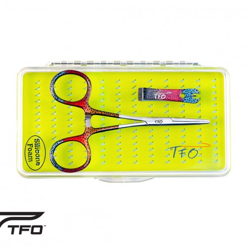 Gift Box with Fish Print Nippers, Kelly Clamp & Large Silicone Fly Box
