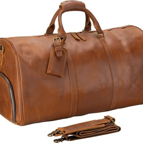 Leather Duffle Bags for Men with Shoe Compartment – 23.6″ x 12.6″ x 11″ Travel Bag, Gym Bag, Also Suitable for Crossbody or Shoulder Carry, Light Brown Large Size