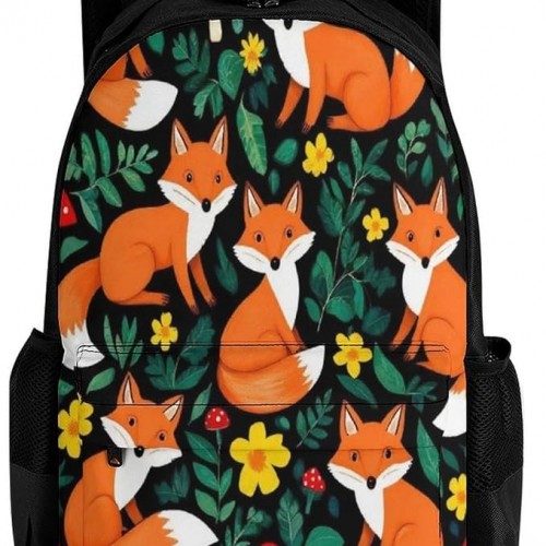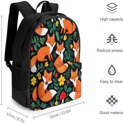 Fashion Lightweight Red Mushroom Green Leaves Flowers Floral Fox Black Bags, Backpacks Easy to Carry, Large Capacity Backpack for Travel Work Outdoor College Sports