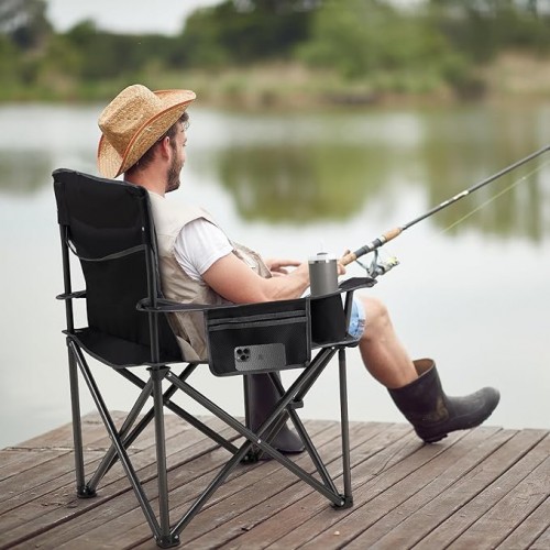 Oversized Folding Camping Chair for Adults – 450lbs Support – Heavy Duty Portable Lawn Chairs with Side Pocket Cup Holder Cooler Bag for Sports Garden Beach Fishing, Black