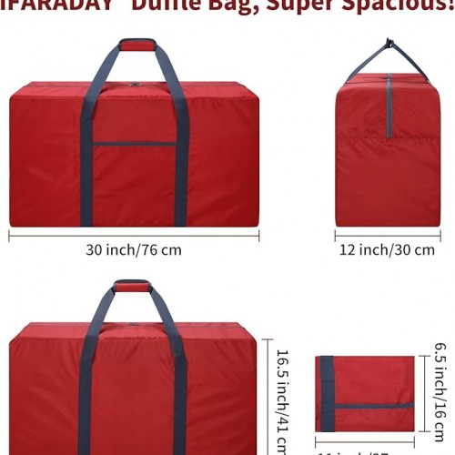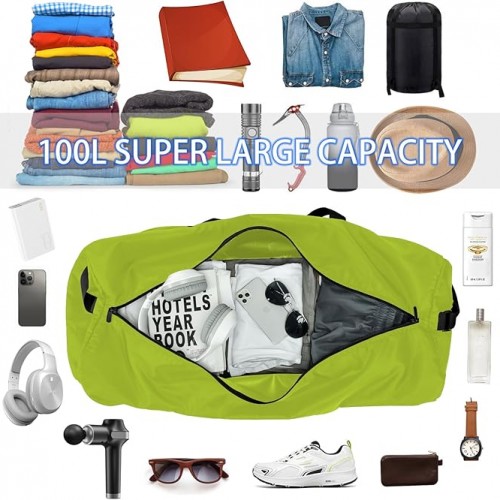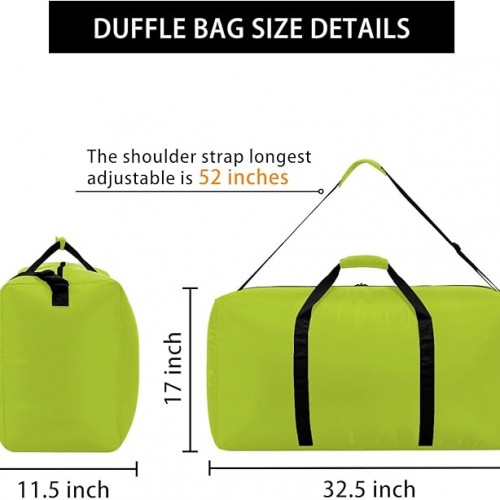 - LARGE CAPACITY FOLDABLE DUFFLE BAG FOR TRAVEL:Up to 105L capacity, dimension of this storage bag is 32.5″x 11.5″ x 17″, total weight is only 1.1lbs. It has 1 zippered main compartment with 1 inside pouch.