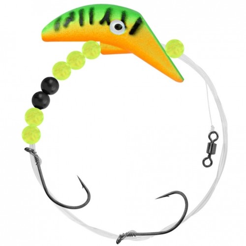 Get your live bait down to new depths while trolling the Walleye A Plug by Apex Tackle. The plug allows anglers to attach their go-to live bait to the pre-fastened hooks and drive them to depths at which walleye and other fish species live. Due to its 14lb 48″ monofilament leader and hard-bodied diving plug this rig, can handle any fish that decides to take a bite.