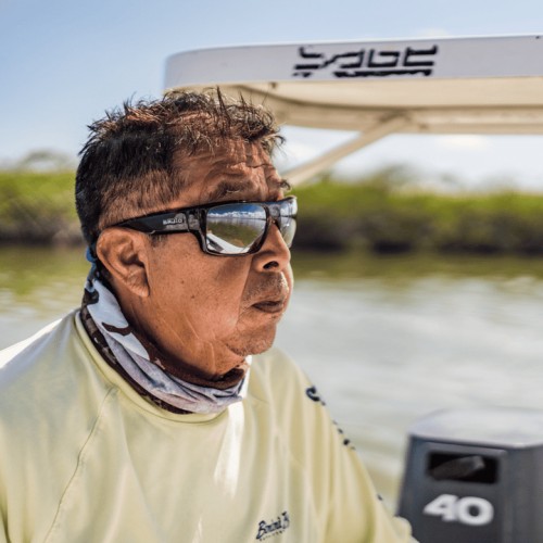 A bold, squared, statement frame that employs oversized temples to block sidelight and keep the focus on what’s in front of you. A large frame can be heavy, but not when it’s made of our lighter and stronger castor-based bio-polycarbonate. Bajío polarized lenses with patent pending LAPIS technology slice through glare for better fish-spotting, while blue light-blocking prevents eye fatigue to maintain visual acuity during marathon days in the sun.