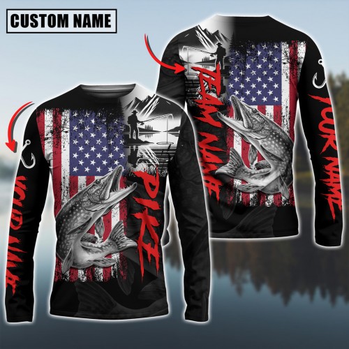 Bluejose American Flag Patriotic Striped Bass Fishing 3D Shirts