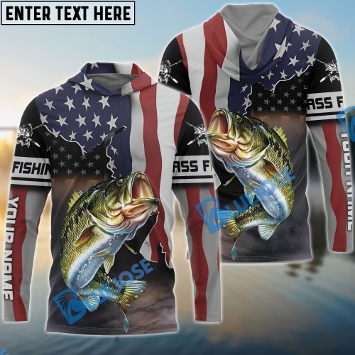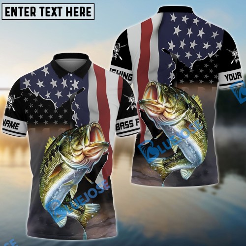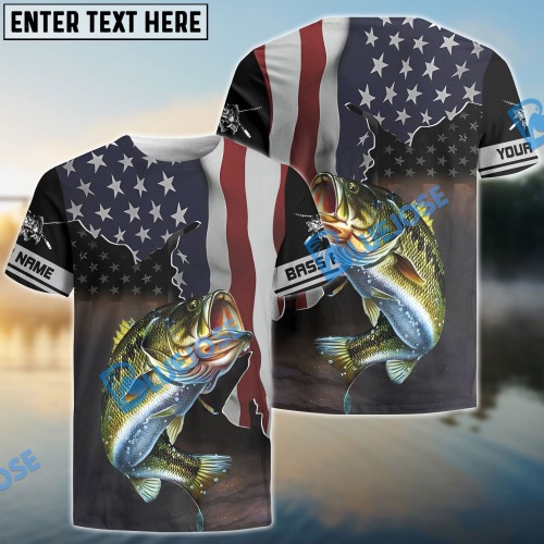 Bluejose Bass Fishing American Flag Custom Name Shirts