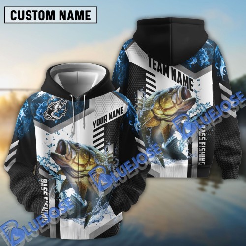 BlueJose Bass Fishing Blue Flame Sport Custom Name & Team Name Shirts