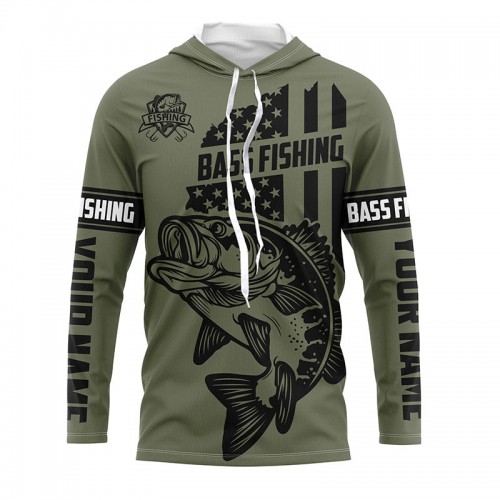 Bluejose Bass Hunter Fishing American Flag Custom Long Sleeve Fishing Shirts