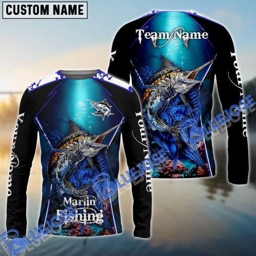 Bluejose Catfish Fishing American Flag Red Blue Seawave Custom Name & Team Name 3D Shirts