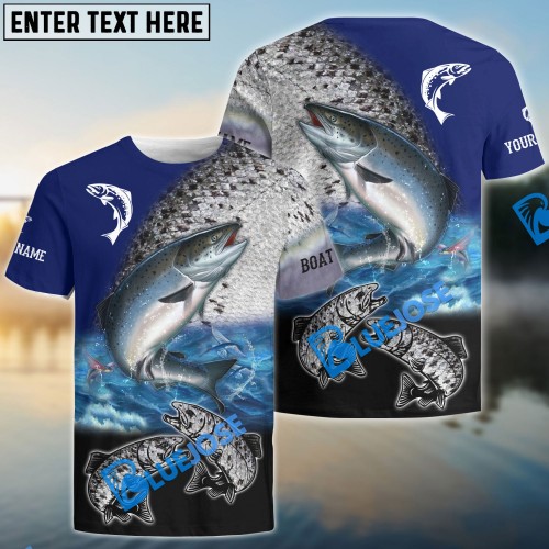 BlueJose Chinook Salmon Fishing Customize Name, Boat Name 3D Shirts