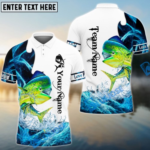 BlueJose Customize Name Mahimahi Fishing Water & White 3D Shirts