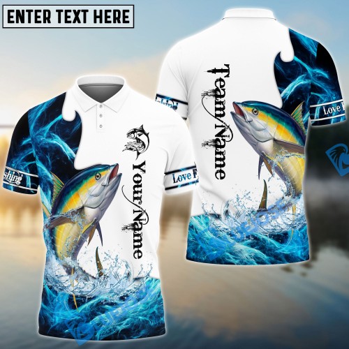 BlueJose Customize Name Tuna Fishing Water & White 3D Shirts