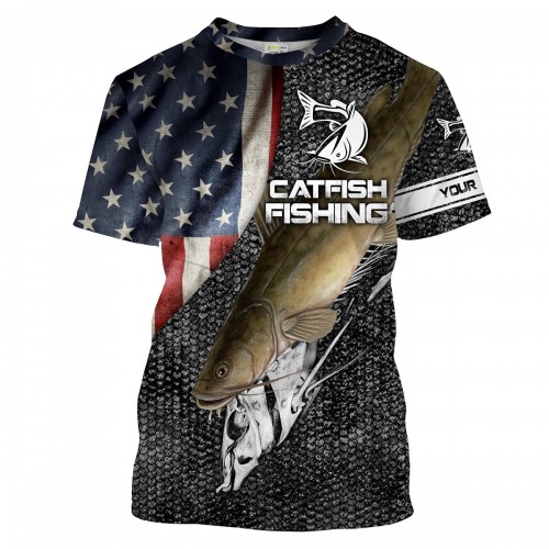 Bluejose Flathead Catfish Fishing American Flag Patriotic Custom Name 3D Shirts