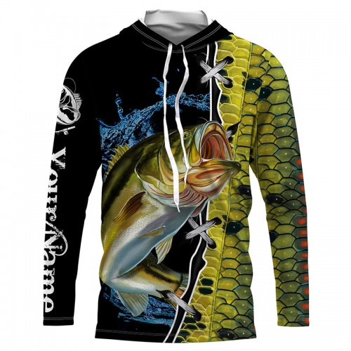 Bluejose Largemouth Bass Fishing Green Bass Scales Custom Name Bass Fishing Long Sleeve, Long Sleeve Hooded