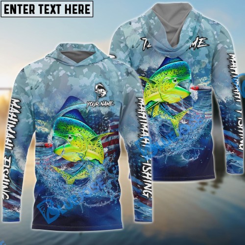 Bluejose Mahimahi Fishing American Flag Seawave Custom Name & Team Name 3D Shirts