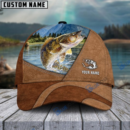 BlueJose Personalized Fishing Leather Pattern Cap (Bass, Striped Bass, Catfish, Trout, Crappie, Salmon, Walleye, Pike)