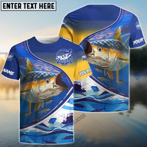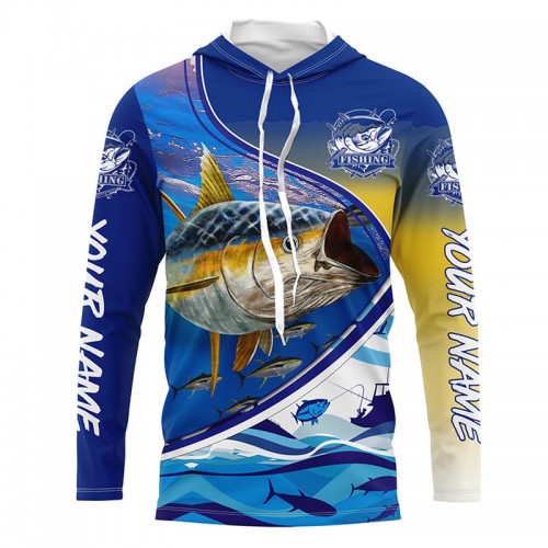 Bluejose Personalized Tuna Fishing Scales Blue Camo Long Sleeve Fishing Shirts, Tuna Saltwater Fishing