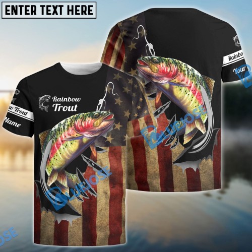 Bluejose Rainbow Trout Fishing Fish Hook American Flag Patriot Custom Name 3D Shirts