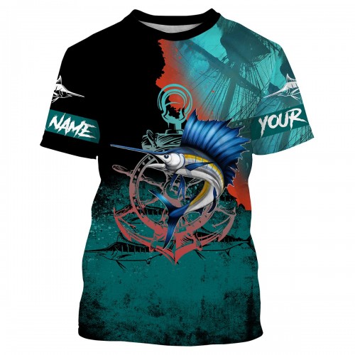 BlueJose Sailfish Fishing Customize Name 3D Shirts