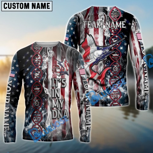 Bluejose Salmon Fishing American Flag Seawave Custom Name & Team Name 3D Shirts