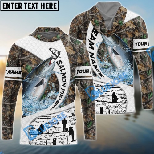 Bluejose Salmon Fishing Camo Forest Scene Custom Name & Team Name 3D Shirts