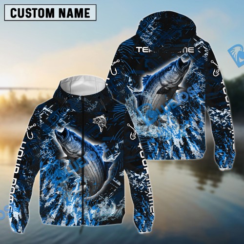 Bluejose Striped Bass Fishing Dark Grunge Blue Custom Name & Team Name 3D Shirts