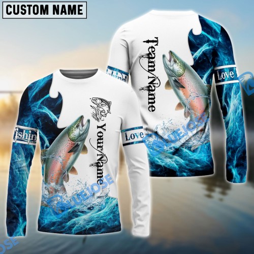 Bluejose Striped Bass Fishing Scale Pattern Splash Art Custom Name & Team Name 3D Shirts