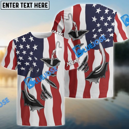 Bluejose Us Fishing Fish Hook American Flag Custom Long Sleeves Shirts Patriotic