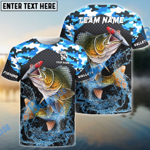 Bluejose Walleye Fishing Blue Camo Sport Custom Name & Team Name 3D Shirts